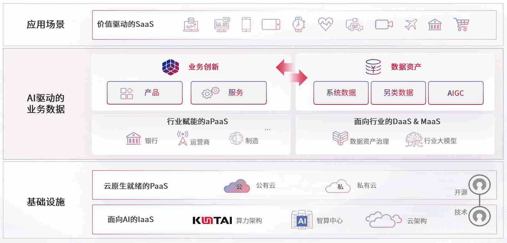数字时代,,,围绕企业数字化转型的关键要素,,z6尊龙数码开创性的提出数云融合战略和技术体系框架,,,,着力在云原生、、、、数字原生、、、AI原生和信创产业上架构产品和服务能力,,为处在不同数字化转型阶段的快消零售、、、汽车、、、、金融、、、医疗、、政企、、、教育、、运营商等行业客户提供泛在的敏捷IT能力和融合的数据驱动能力,,,构建跨界融合创新的数字业务场景和新业务模式,,,助力企业级客户建立面向未来的核心能力和竞争优势,,,全面推动社会的数字化、、智能化转型升级。。。。